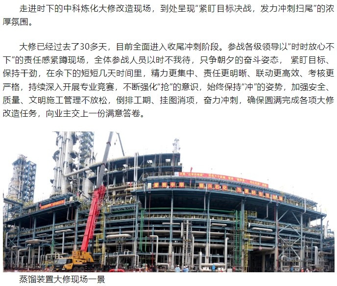 緊盯目標決戰(zhàn) 奮力沖刺掃尾——走馬2024年中科煉化裝置大修改造大會戰(zhàn)現(xiàn)場