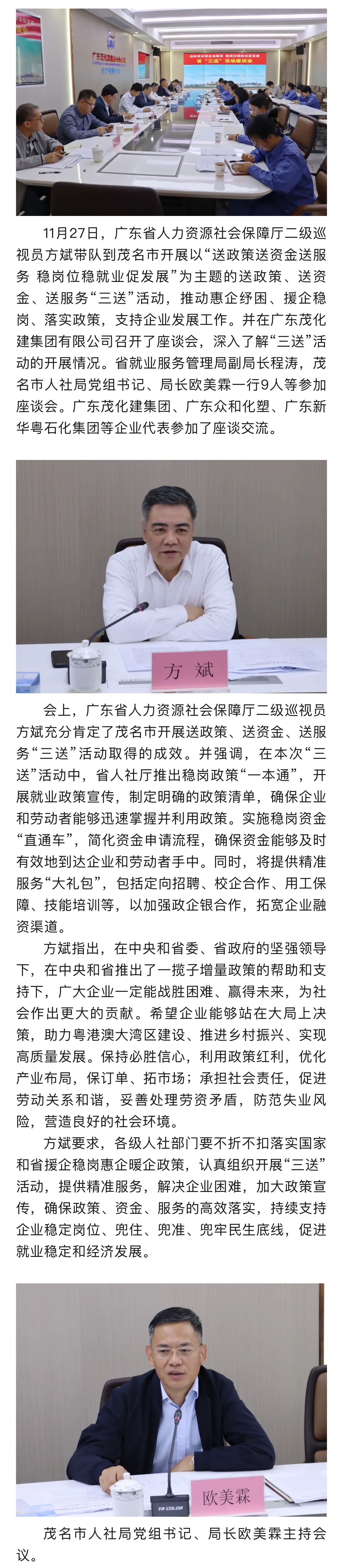 省人社廳“三送”活動(dòng)座談會(huì)在茂化建舉行