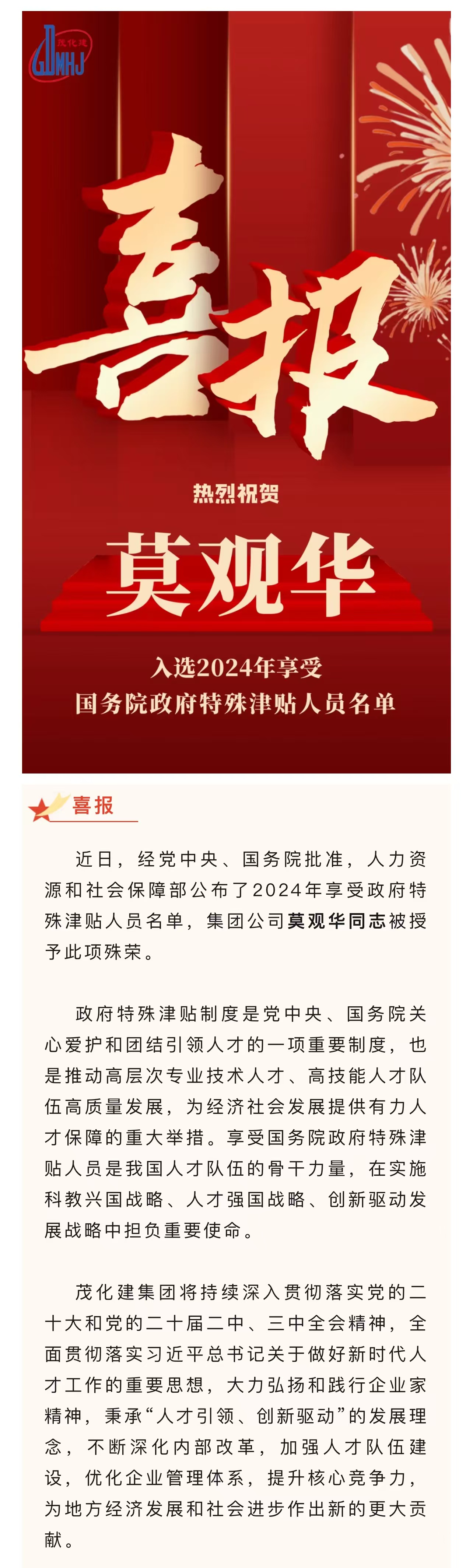 喜報(bào):莫觀華入選享受國務(wù)院政府特殊津貼人員名單