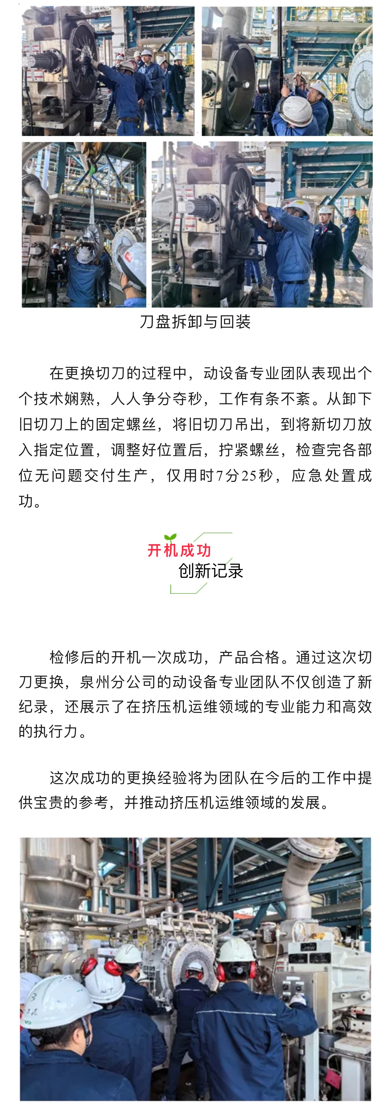 超棒!泉州動設備團隊 | 7分25秒成功在線更換擠壓機切刀