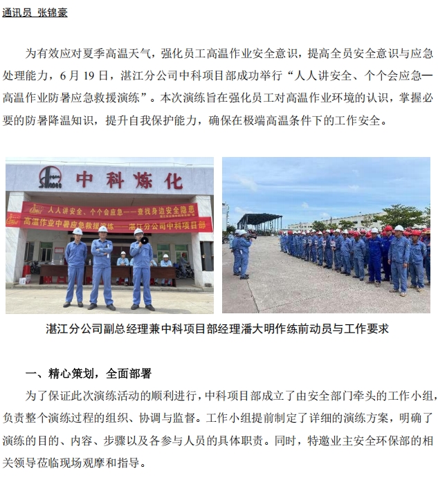 湛江分公司中科項(xiàng)目部開(kāi)展高溫作業(yè)中暑應(yīng)急救援演練