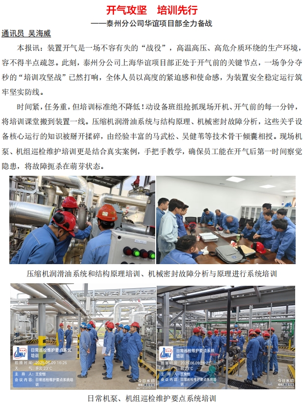 泰州分公司華誼項目部全力備戰(zhàn)裝置開汽