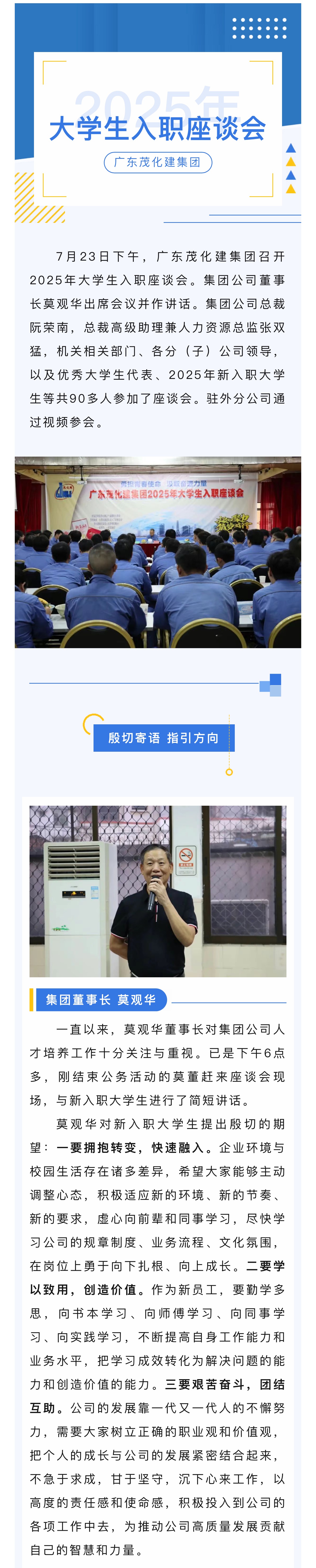 集團(tuán)公司召開2025年大學(xué)生入職座談會(huì)